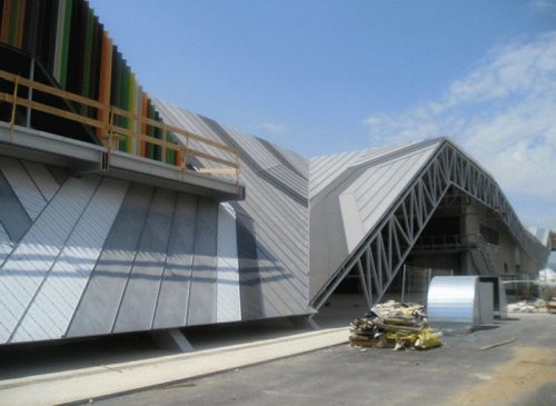 El proyecto del arquitecto se basó en buscar “una familia de estructuras” que pudieran definir un espacio sirviendo ellas por si solas de techo, paredes y suelo, o sea todas las estructuras juntas en una sola opción. Estas características se lograron mediante una estructura metálica, angular y recubierta de planchas de zinc y que recupera la idea de un cuadro impresionista en la combinación de líneas de colores de su perímetro, donde un gran techo, con caídas perpendiculares y entradas de luz, abraza los sectores internos.