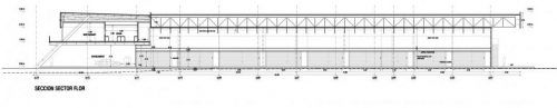 Esta cubierta es una combinación de pliegues entre el suelo, la pared y el techo, entre los que se encuentran los accesos, las zonas de carga y descarga o los espacios protegidos alrededor de todo el recinto, siendo protección y fachada.