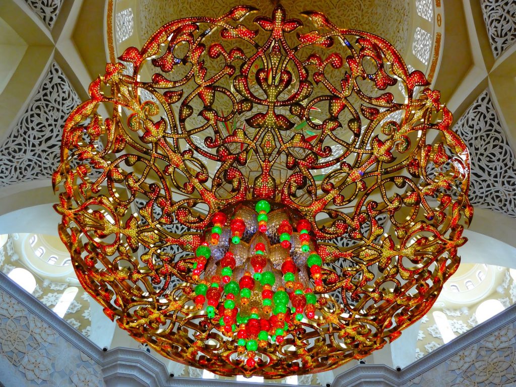 El complejo tiene 1096 columnas en el exterior y 96 en el interior, siendo su artesanía inspirada en motivos musulmanes tanto de India, Marruecos, Argelia y Pakistán. La alfombra en la sala principal es, con 5.627 m2, la alfombra más grande del mundo, pesa 47 toneladas (35 de lana y 12 algodón) y tiene 2.268.000.000 nudos. Está hecha a mano por aprox. 1.200 mujeres iranís y diseñada por el artista Ali Khaliqi. Tiene un valor estimado de 8,5 millones de dólares.