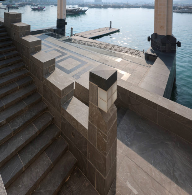 La construcción de la subestructura para el edificio del Museo de Arte Islámico, una estructura completamente rodeada por agua, implicó la creación de una plataforma de relleno estructural contenida dentro de un cerramiento de pilotes de hormigón «conducido» especialmente diseñado. Se implementaron obras temporales adecuadas y esquemas de deshidratación.