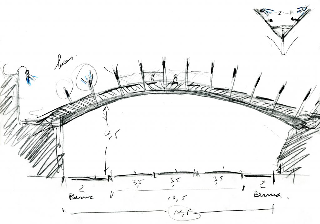 “Se nos pidió un puente que brindara seguridad a la circulación peatonal, uniendo por la parte alta ambos sectores”.