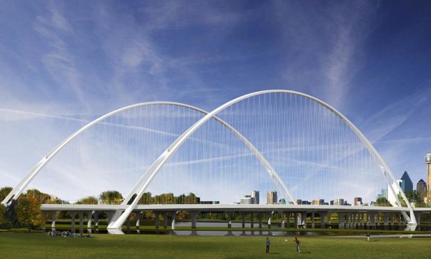 Santiago Calatrava diseñó 3 estructuras para la ciudad de Dallas, el puente Margaret Hunt Hill inaugurado en marzo del 2012 para tráfico vehicular, el puente Margaret McDermott para peatones y bicicletas y un tercer proyecto que fue suspendido.