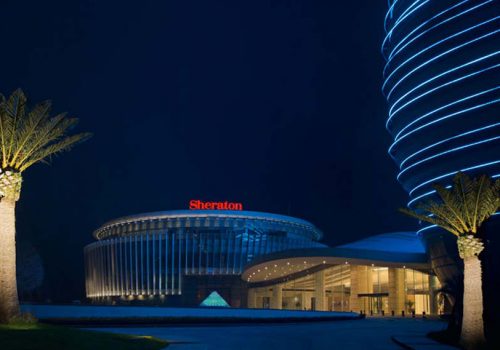 El hotel en forma de herradura se encuentra en la ciudad de Huzhou, al sur del lago Taihu, en la parte septentrional de la provincia de Zhejiang, entre Nanjing y Shanghai, China. El Sheraton Huzhou Hot Spring Resort está a una hora en automóvil aproximadamente del Aeropuerto Internacional de Xiaoshan (HGH) en Hangzhou.