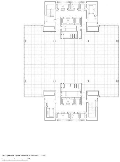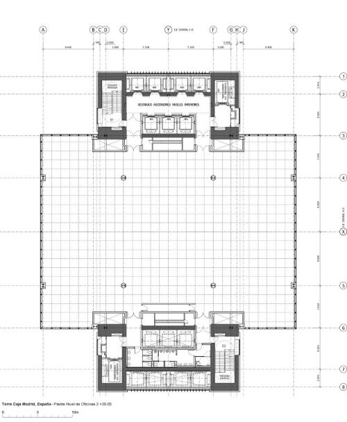 La plaza y los forjados que se encuentran debajo están diseñado para resistir las cargas de gravedad y transferir las cargas laterales desde las paredes del núcleo de la torre a los muros perimetrales y muros pantalla del sótano.