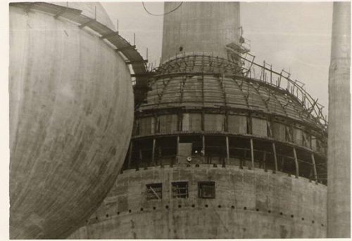 Los altos ejes de la torres se levantaron con un encofrado deslizante y utilizando diversos tipos de hormigón, tanto en los ejes como en los depósitos, ya que los requisitos de resistencia y estanqueidad eran altos. El hormigón más utilizado fue el de fuerza 35 y 40 MPa. Durante los meses de Mayo a Septiembre no se pudo trabajar en la terminación de las estructuras estancas, pues las temperaturas superaban los 40º, teniendo que enfriar el agua con hielo.