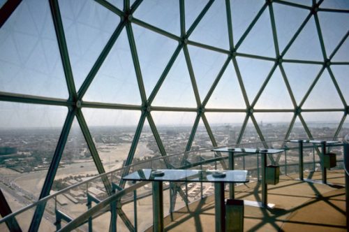 Elevándose a una altura de 185m sobre el nivel del mar, esta torre de hormigón se compone de planta baja y dos esferas, la esfera principal y la esfera mirador.