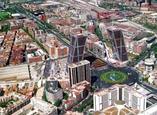 Las Torres KIO son dos torres de cristal, granito y metal, colocadas simetricamente con respecto al eje Castellana.