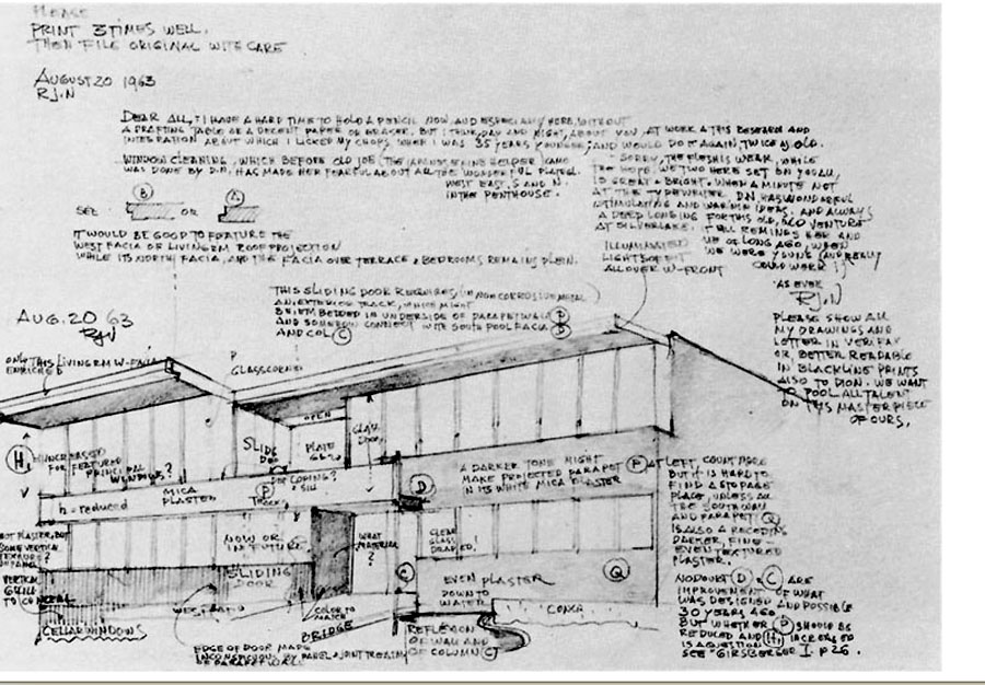 Dion Neutra estrecha la supervisión del proyecto para poder realizar un intenso estudio de los efectos de los nuevos elementos de diseño. Estudió la mejor altura de las ventanas para la visualización cambiando el umbral de las mismas.