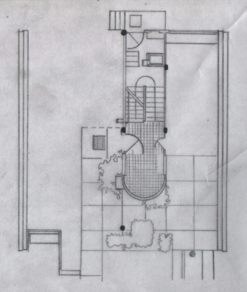 Al mismo tiempo en el espacio a doble altura de la estancia existe una inflexión curva que nos señala esas primeras contradicciones al expresar un espacio clásico contra un espacio modular como es el balcón en fachada principal.