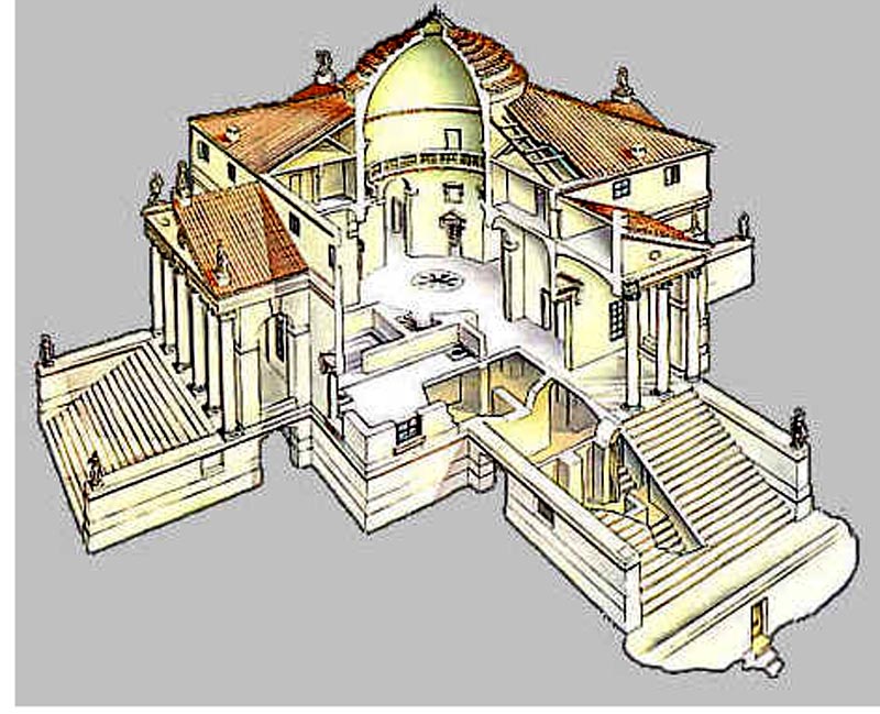 Es una versión de la que podemos ver en el Panteón de Roma. Es una de las primeras veces que se puede ver una planta centralizada con cúpula en una construcción civil. Hasta ese momento se habían usado sólo para construcciones religiosas, por eso Paladio hizo un modelo tan impactante y que fue copiado posteriormente. Incluso él la incluyó en su tratado de arquitectura, Los Cuatro Libros de la Arquitectura.