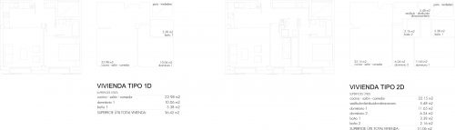 Se ha generado un tipo de vivienda capaz de aprovechar al máximo el reducido espacio disponible al eliminar vestíbulos y pasillos y la unión de los elementos de cocina y salón en un único espacio de uso flexible. El espacio de acceso a las habitaciones se utiliza a su vez de zona de lavado y de tendedero mediante la inserción de un patio de luces que soluciona la ventilación de la vivienda, mejora su iluminación y funciona como tendedero. Se dispone así la zona de lavado-tendedero alejada del espacio de la cocina, asociada en cambio al de los dormitorios.