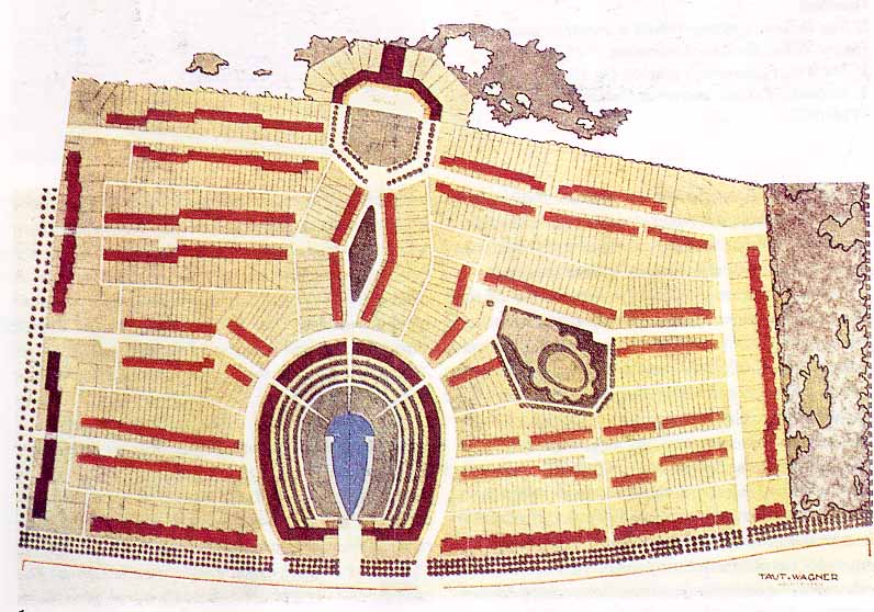 El concepto de Taut para el edificio en forma de herradura deriva de su deseo de llenar la necesidad de socialización de sus habitantes. Su intención era que los habitantes del complejo tuvieran contacto con la naturaleza, que disfrutaran de aire, luz y sol, de ahí los grandes balcones y ventanales que se abren al paisaje. Esta construcción está considerada históricamente como uno de los primeros intentos de humanizar la vivienda de alta densidad.